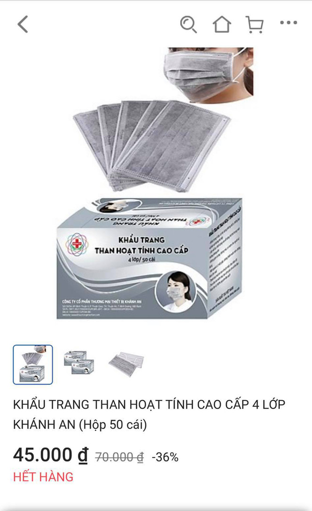 Một số shop niêm yết giá 45.000 đồng/hộp khẩu trang đều thông tin hết hàng