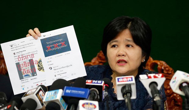 Người phát ngôn Bộ Y tế Campuchia tại buổi họp báo ban bố cách ly 44 người. (Nguồn: khmertimeskh.com)